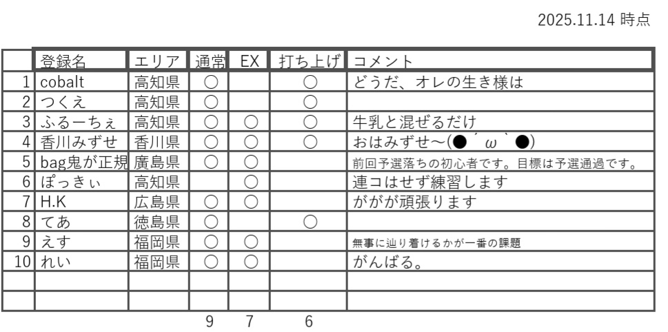 登録内容が正しく反映されていない場合や変更・追加がある場合は大会or主催アカウントへのDM、または登録フォームの自由欄にてお知らせ下さい